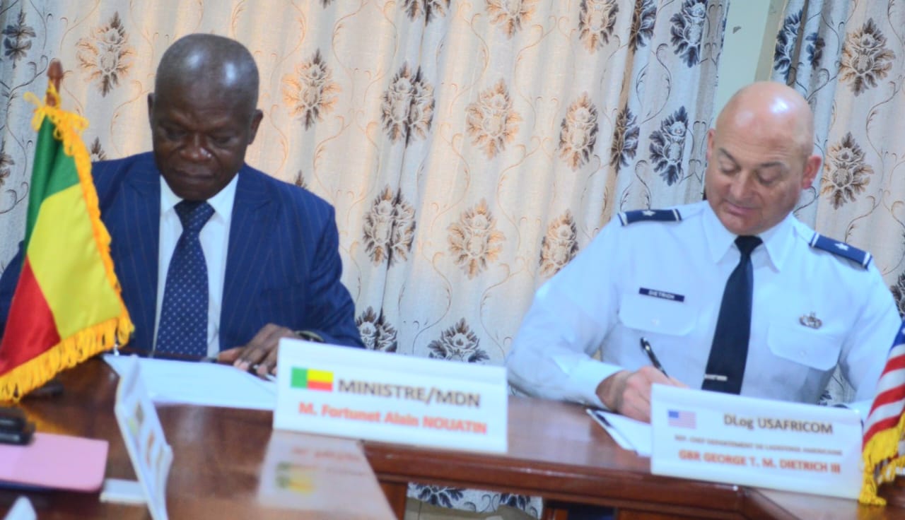 Dans une avancée majeure pour la coopération militaire entre le Bénin et les États-Unis, le Ministre délégué chargé de la Défense nationale, Monsieur Fortunet Alain NOUATIN, a signé ce mercredi un accord d’assistance mutuelle avec le Général de brigade George DIETRICH, représentant l’US AFRICOM. Cet accord, qui vise à améliorer l’interopérabilité entre les Forces Armées Béninoises et américaines, a été accueilli avec enthousiasme par les deux parties.