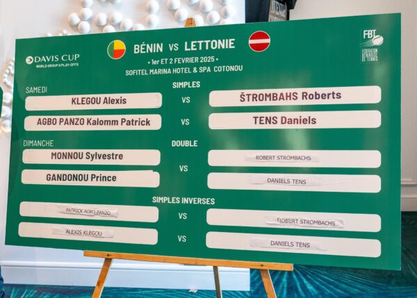 Dans les Play-offs du Groupe Mondial II de la Coupe Davis 2025, l’équipe béninoise a triomphé de la Lettonie après une rencontre particulièrement...