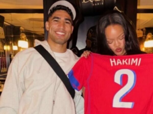 Hakimi offre un maillot du PSG à Rihanna lors d’une rencontre à Paris